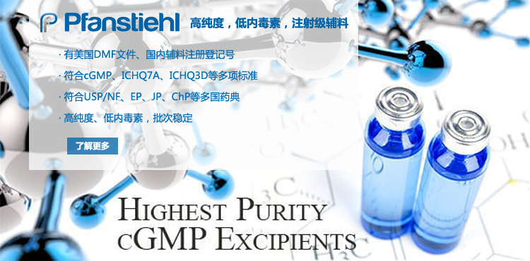 “熱烈祝賀Pfanstiehl的注射級甘氨酸Glycine(G-140)喜獲CDE登記號F20250000403, 這是Pfanstiehl產品獲得的第18個CDE登記號!”甘氨酸在醫藥輔料制劑中應用廣泛,, 可作為緩沖劑,增溶劑,穩定劑等,具有諸多優勢。Pfanstiehl秉承一貫高品質理念,為滿足全球生物制藥行業對于高品質甘氨酸的需求,隆重推出的注射級甘氨酸Glycine (G-140), 具有超高純度,超低內毒素,超低金屬殘留的特點,單獨檢測29種金屬離子,并且新增DNA,RNA,DNA酶,RNA酶和脂肪酶,亞硝酸鹽等多項質量指標的檢測,符合多國藥典規定(USP, EP, BP, JPE, ChP),可用于生物治療性藥物和疫苗的生產。產品信息:· 產品名稱:Glycine, High Purity, Low Endotoxin, Low Metals, USP, EP, BP, JPE, ChP (G-140)· 中文名稱:甘氨酸· 分子式:C2H5NO2· 分子量:75.07 g / mol· CAS號:56-40-6· 產品貨號:G-140產品特點: · 超高純度,超低內毒素,超低微生物含量,超低金屬雜質殘留· 質量指標新增DNA,RNA,DNA酶,RNA酶,脂肪酶和亞硝酸鹽檢測· 符合多國藥典:USP, EP, BP, JPE, ChP· 符合ICH Q3D標準· 符合GMP標準· 已獲DMF和CDE登記號 產品應用:· 緩沖劑· 穩定劑· 增溶劑如果您對Pfanstiehl注射級別Glycine G-140感興趣,歡迎聯系Pfanstiehl 中國區代理商北京西美杰科技有限公司獲得如下詳細的產品概況說明文件和測試樣品。Pfanstiehl Inc.最新產品系列如下,歡迎聯系北京西美杰科技有限公司獲取100g裝免費樣品。北京西美杰科技有限公司為Pfanstiehl中國代理,為客戶提供完善的技術支持與售后服務。歡迎撥打西美杰客服電話400-050-4006或者登陸網站www_xmjsci_com.ecsh.com.cn了解更多信息。 更多>